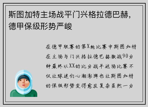斯图加特主场战平门兴格拉德巴赫,德甲保级形势严峻